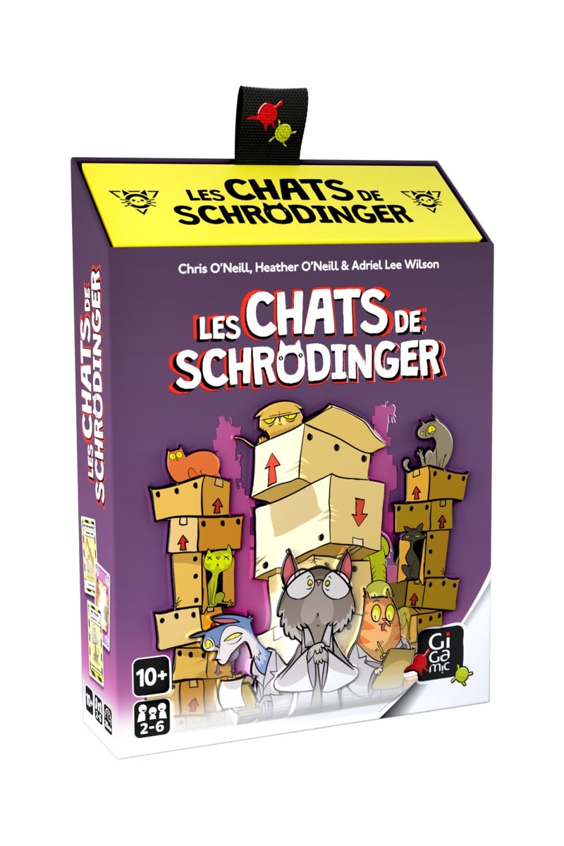 Règles du jeu : enfilez votre blouse pour une grande expérience de bluff et de rebondissements. Estimez le nombre de cartes en jeu qui concernent un certain état quantique (Chat vivant, Chat mort ou Boîte vide). Surenchérissez sur les annonces déjà faites ou alors contredisez l’annonce en cours pour éliminer un autre joueur... sauf si c’est vous qui vous trompez ! Le dernier présent dans l’expérience a gagné !