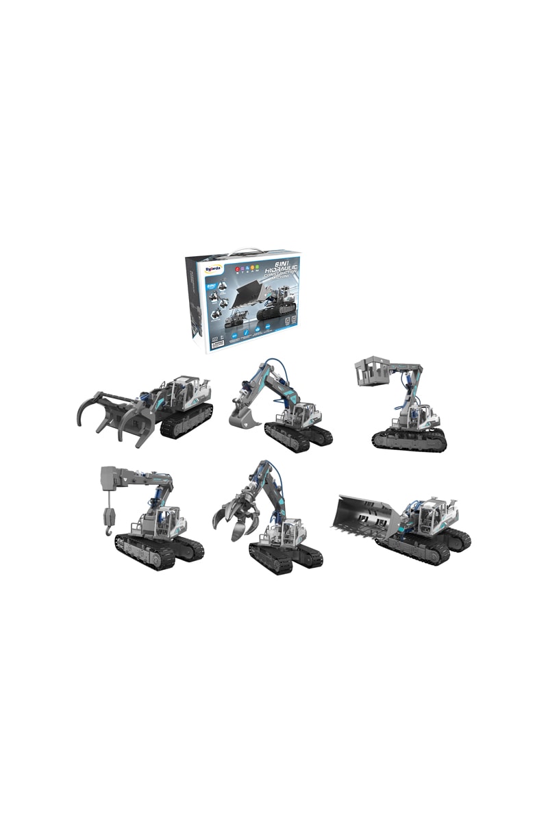 Comprend 1 base et 6 accessoires interchangeables : nacelle hydraulique, grappin hydraulique, grue hydraulique, excavatrice hydraulique, bulldozer hydraulique, chargeur hydraulique pour bois.