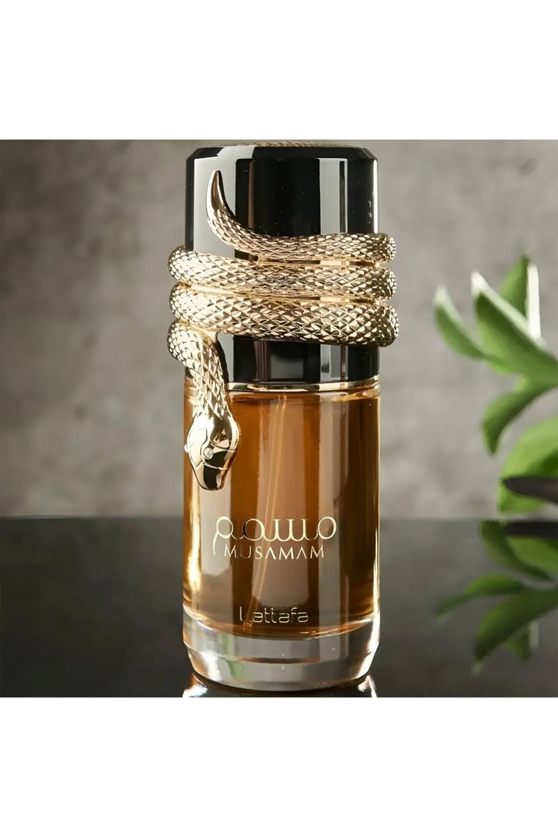 Musamam, lancé en 2022, est un parfum Boisé Aromatique pour homme et femme de Lattafa Perfumes. Les notes de tête de ce parfum sont la mandarine italienne, le safran et la lavande. Les notes moyennes de ce parfum sont le cèdre de Virginie, le géranium et le bois d'ambre avec des notes de fond d'encens, d'akigalawood et de labdanum.