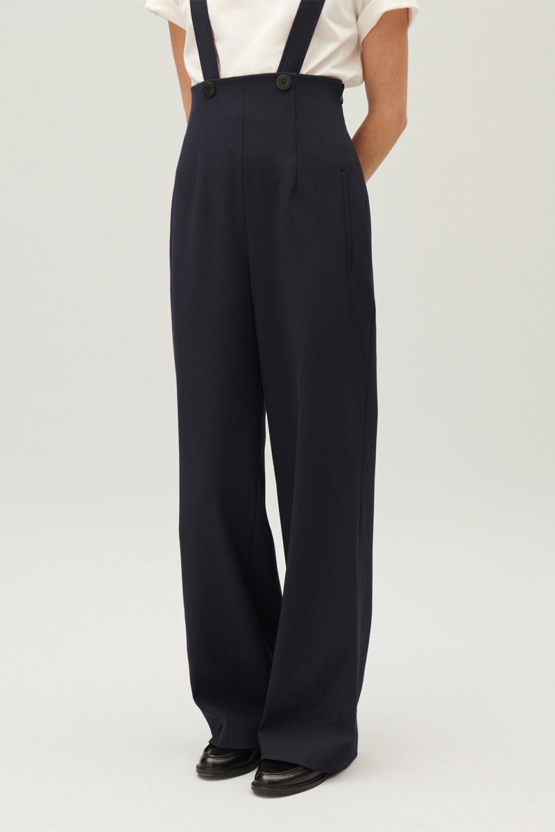 Pantalon en laine taille haute - Bleu marine