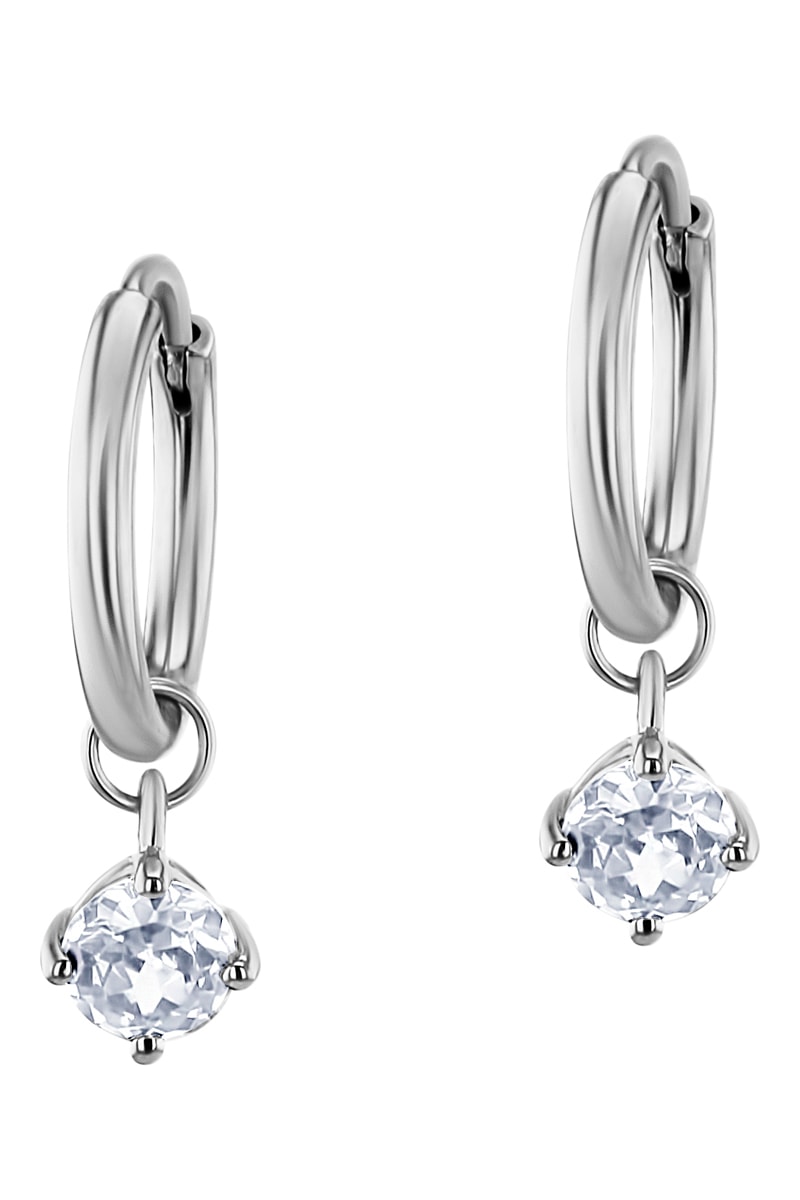 Créoles en argent serties d’une topaze.