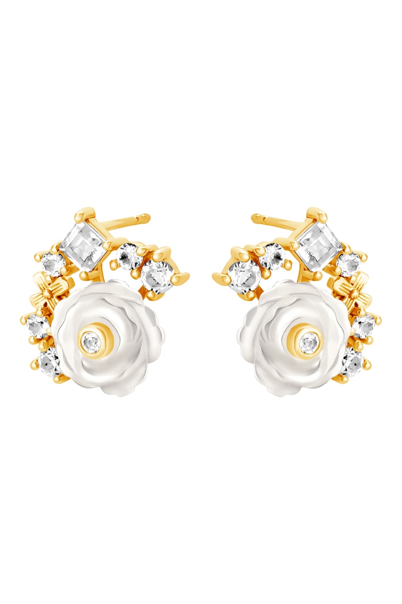 Matière : argent 925/1000 plaqué or jaune, nacre 3,36 carats/2, topaze 0,352 carat/4, 0,228 carat/6 et 0,47 carat/2
