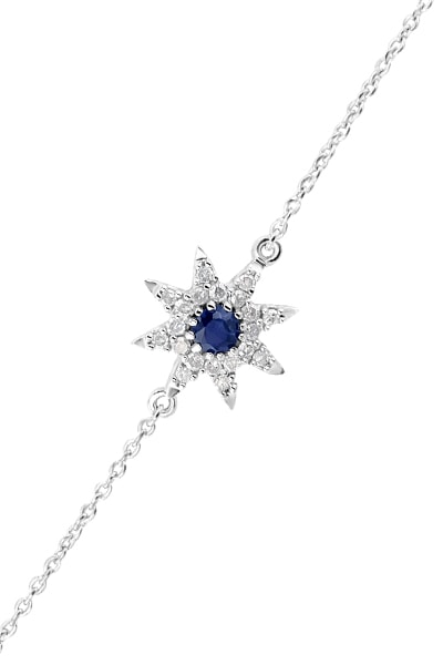 Bracelet en argent serti de 20 diamants et d’un saphir.