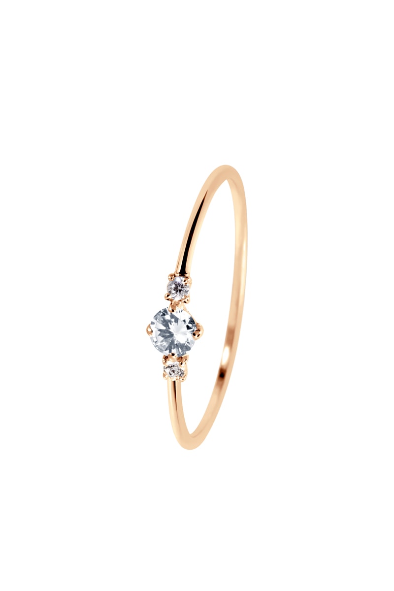 Bague en argent plaqué or jaune sertie de 2 diamants et d'une topaze.