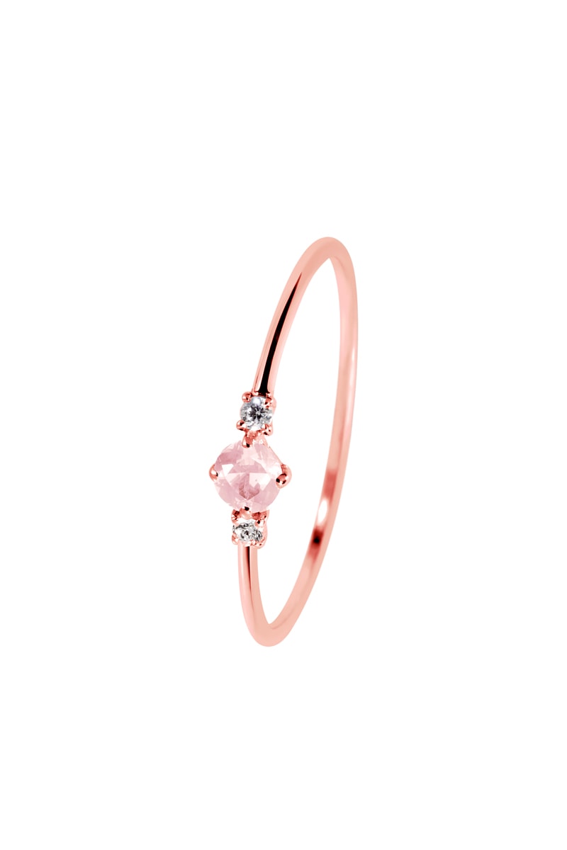 Bague - Argent plaqué or rose, diamants et quartz