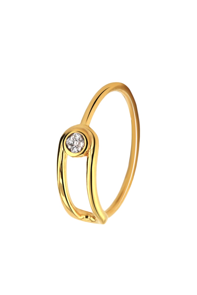 Bague en argent plaqué or jaune sertie de 4 diamants.