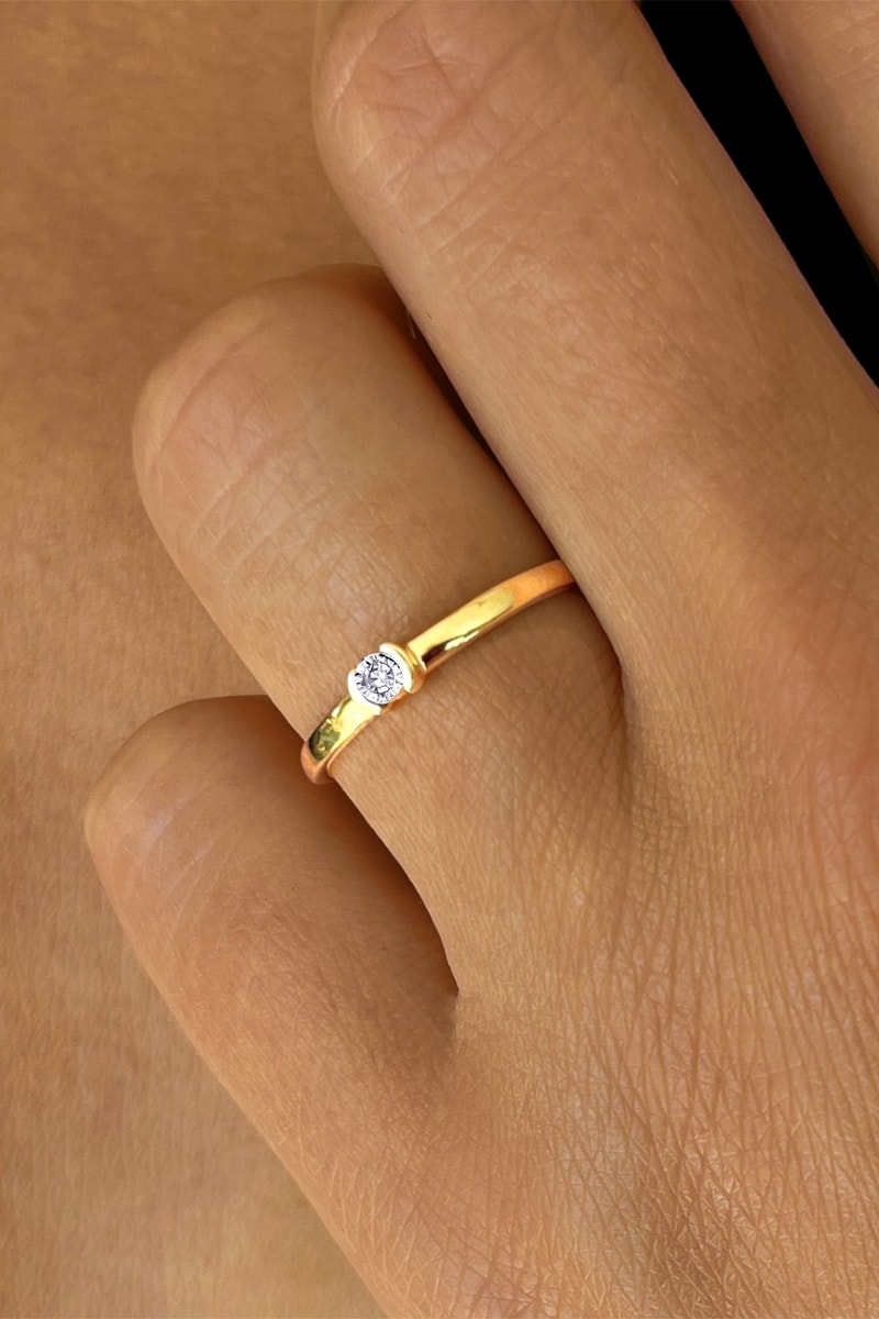 Solitaire en argent plaqué or jaune serti d’un diamant.