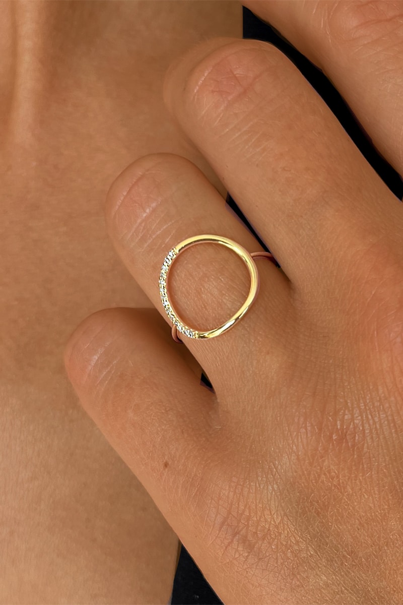 Bague en argent plaqué or jaune sertie de 14 diamants.