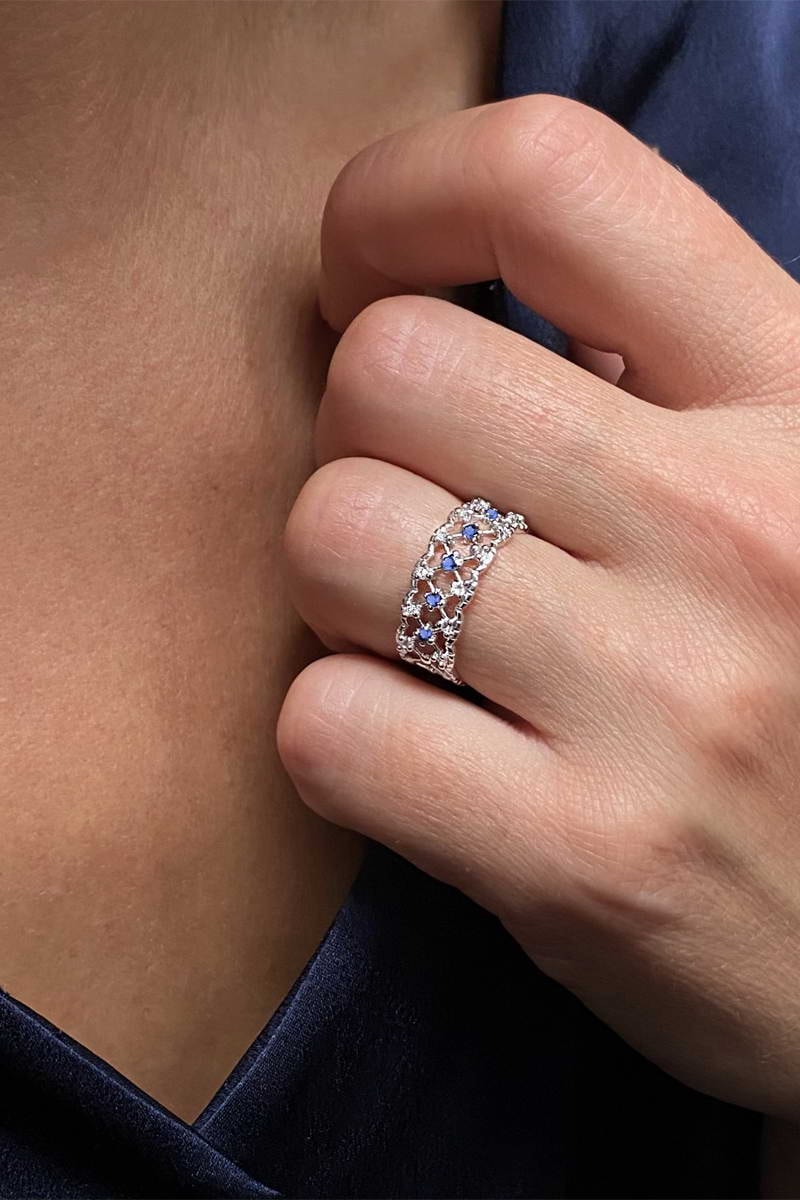 Bague en argent sertie de 12 diamants et de 5 saphirs.