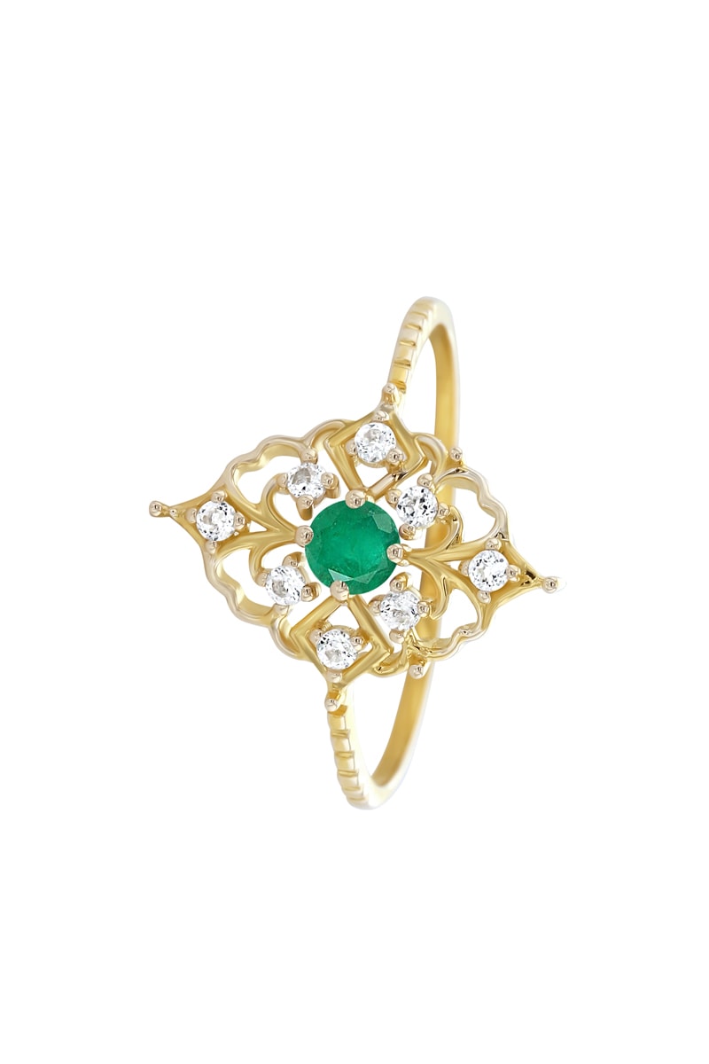 Bague - Argent plaqué or jaune, diamants et émeraude