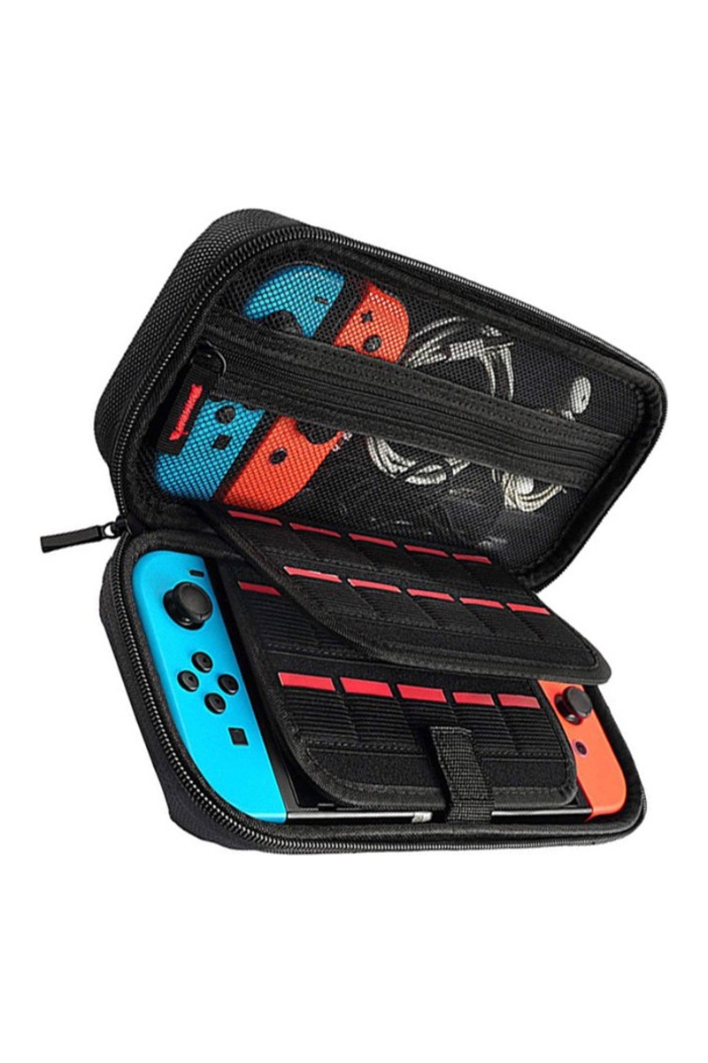 Une poche plaquée intérieure en nylon avec fermeture éclair offre un espace de rangement sécurisé pour vos accessoires, câbles et manettes joy-con additionnelles.