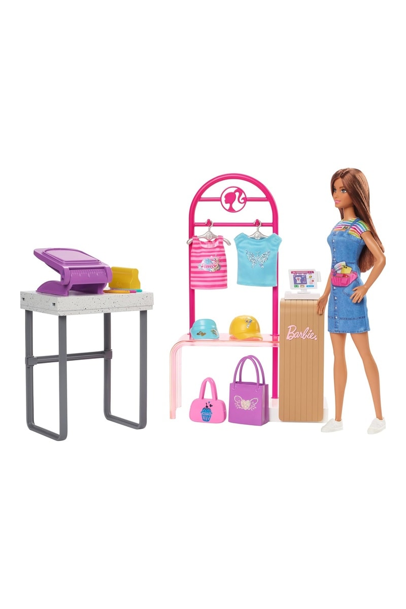 Les enfants peuvent s’inventer une histoire sur mesure dans l’industrie de la mode avec cette poupée Barbie et le coffret Boutique Créations !