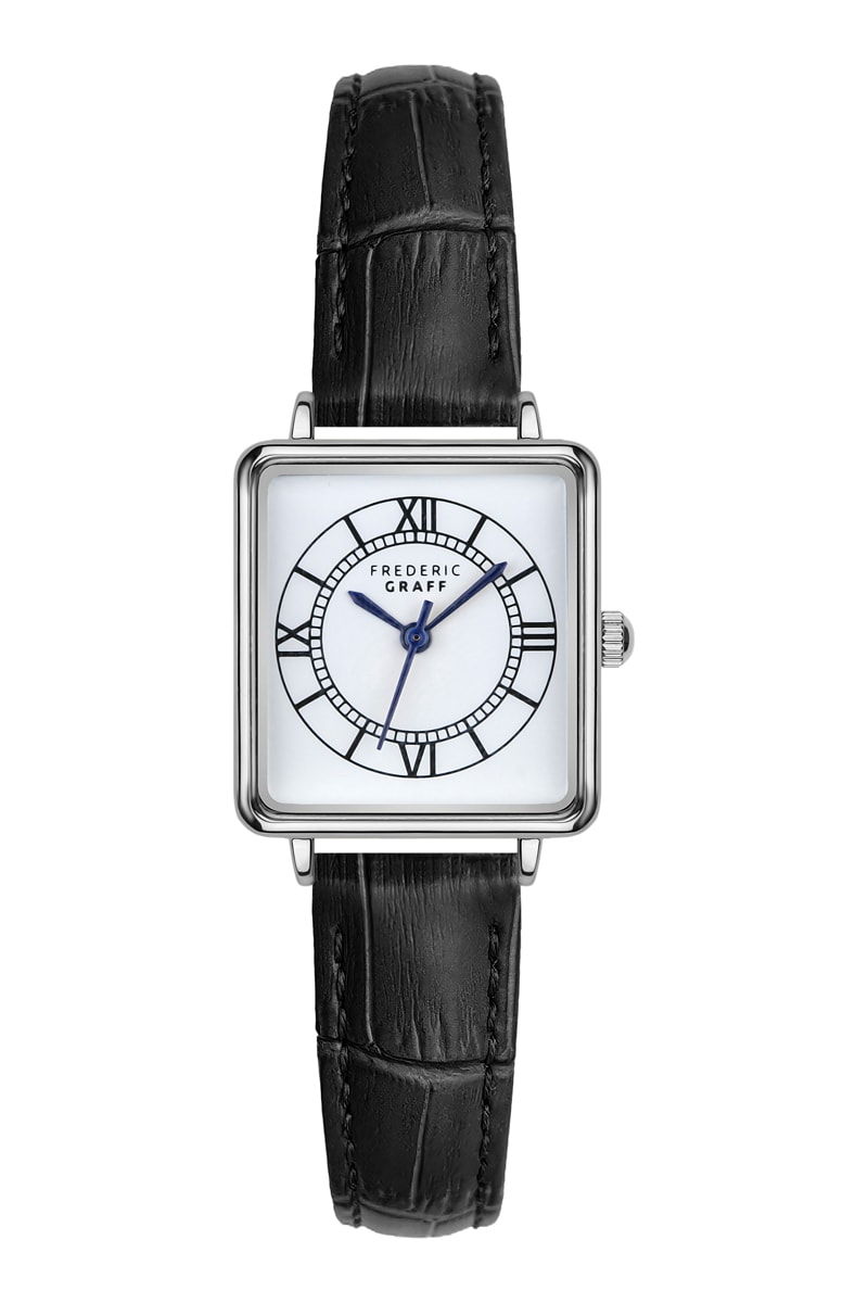 Montre à quartz en cuir - Noir et argenté - Frederic Graff