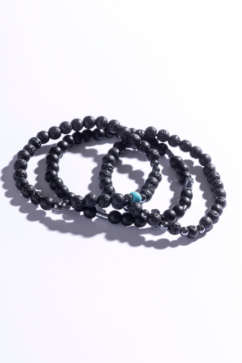 Matière : turquoise, pierres de lave, perles de verre et acier inoxydable