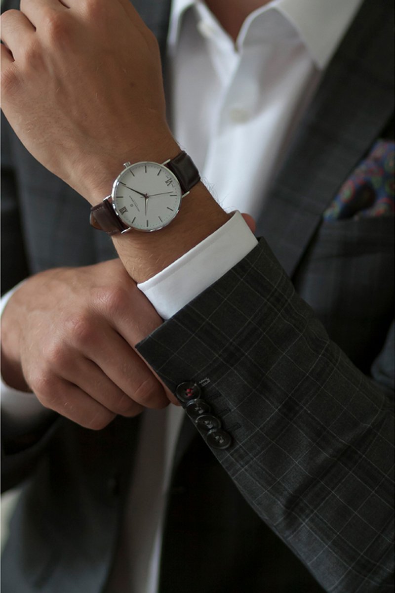 Montre à quartz en cuir - Marron foncé et blanc - Frederic Graff