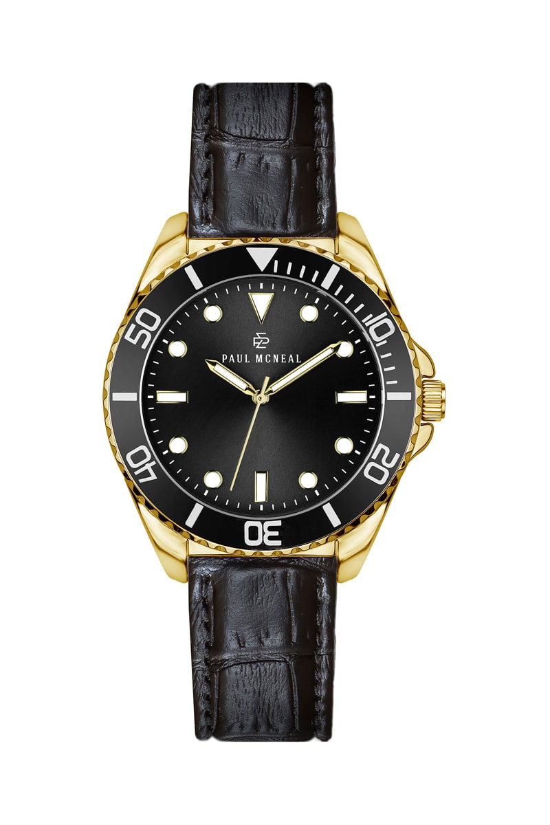 Montre à quartz en cuir - Noir et doré
