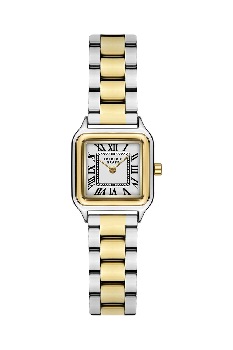 Boîtier en acier inoxydable plaqué ion or jaune et argent.