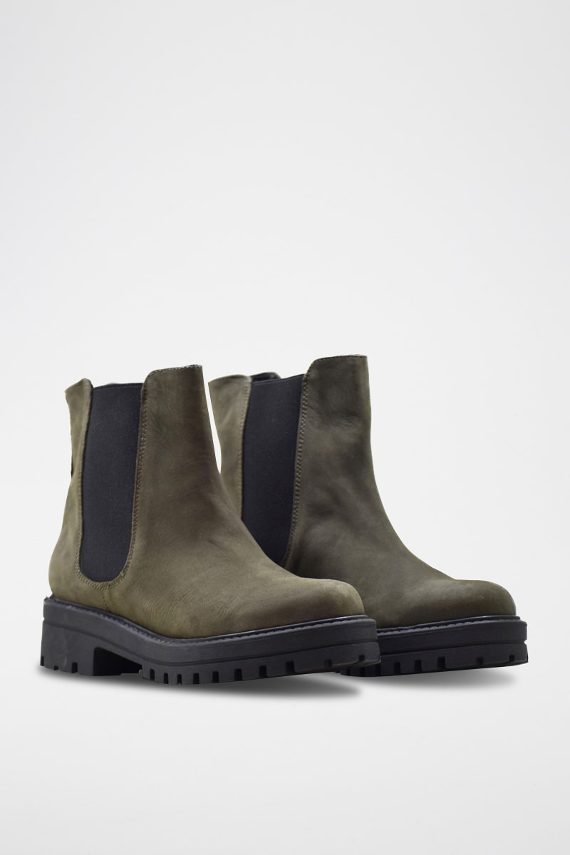Bottines Chelsea en croûte de cuir - Kaki