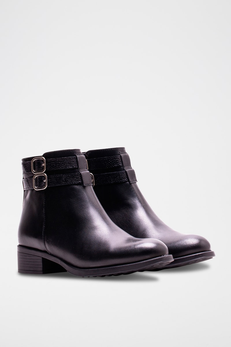 Fermeture par brides à boucle sur le côté extérieur et zippée sur le côté intérieur.