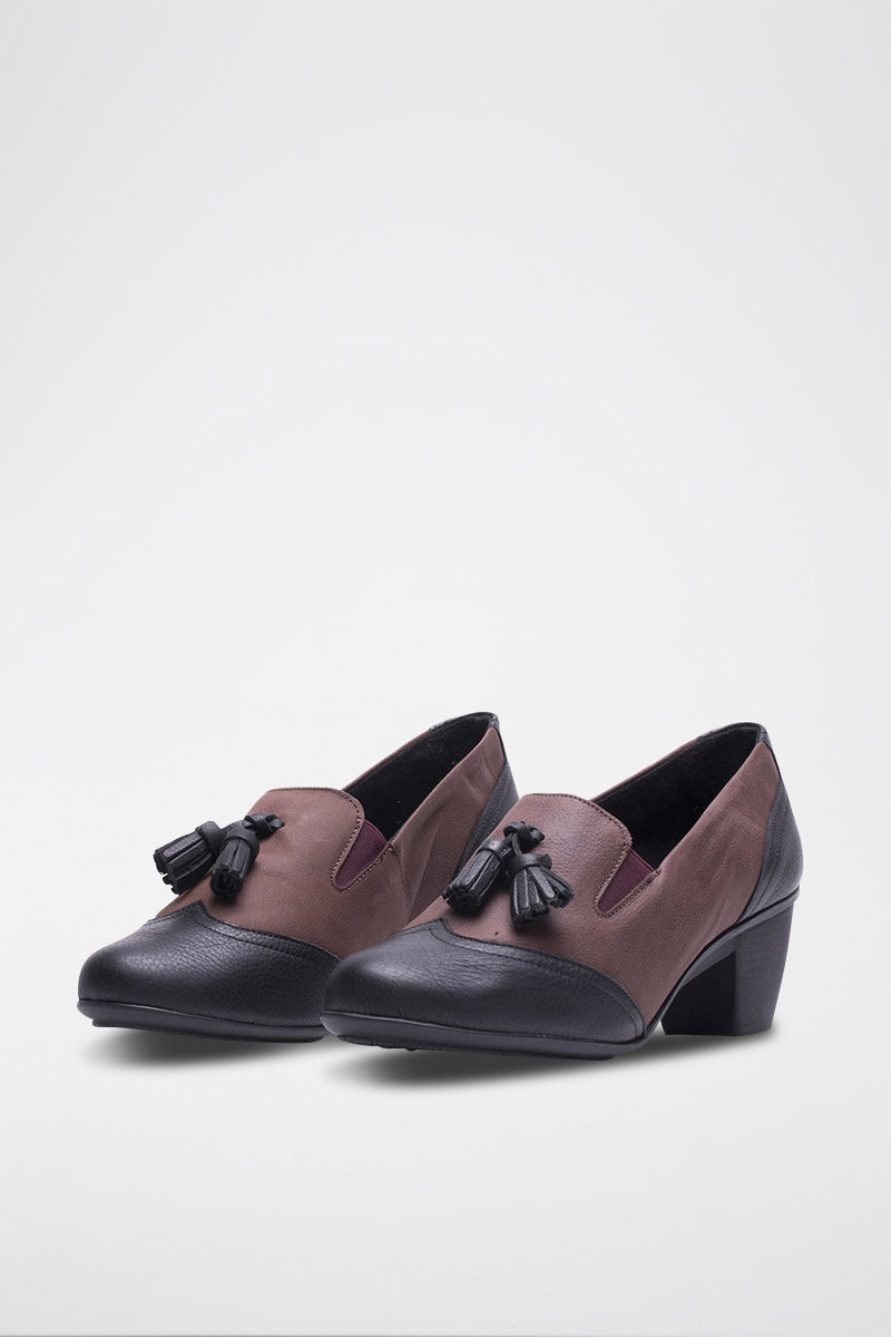 Mocassins à talons en cuir - Noir et bordeaux
