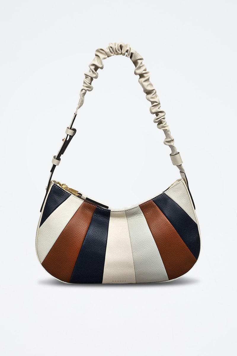 Sac porté épaule en cuir Wilton Crescent - Ecru et bleu marine