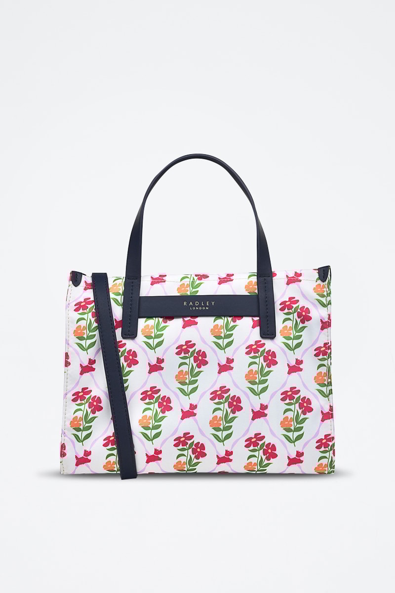 Motifs fleurs et logo.