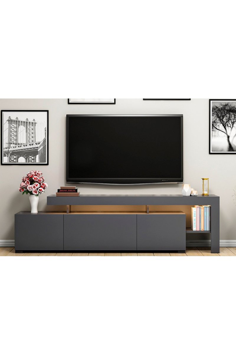 Meuble TV 2 portes et abattant - 192 x 53 x 37 cm