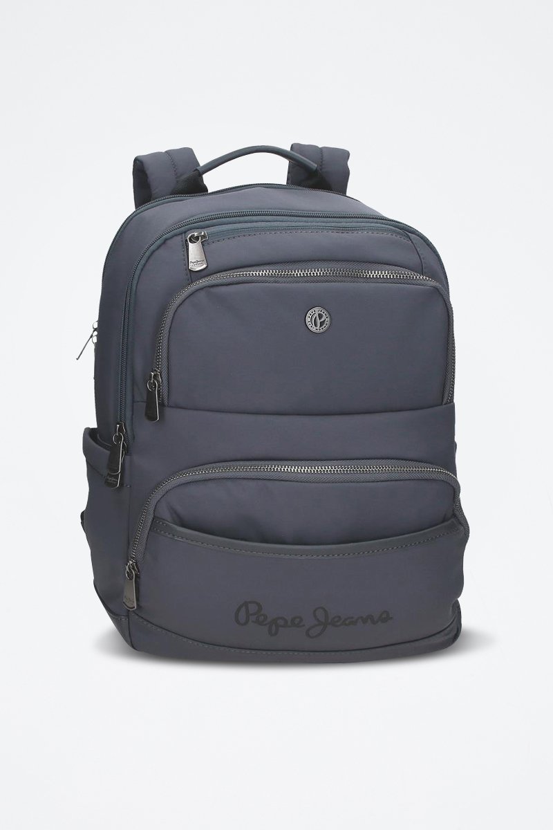 4 poches dont 3 zippées, logo métallique et logo devant.