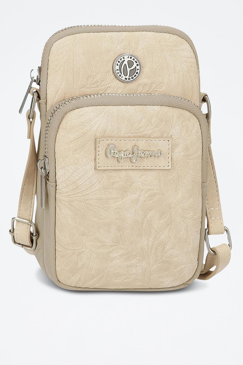 Poche zippée et empiècement effet cuir à motifs fleurs en relief et logo métallique devant.