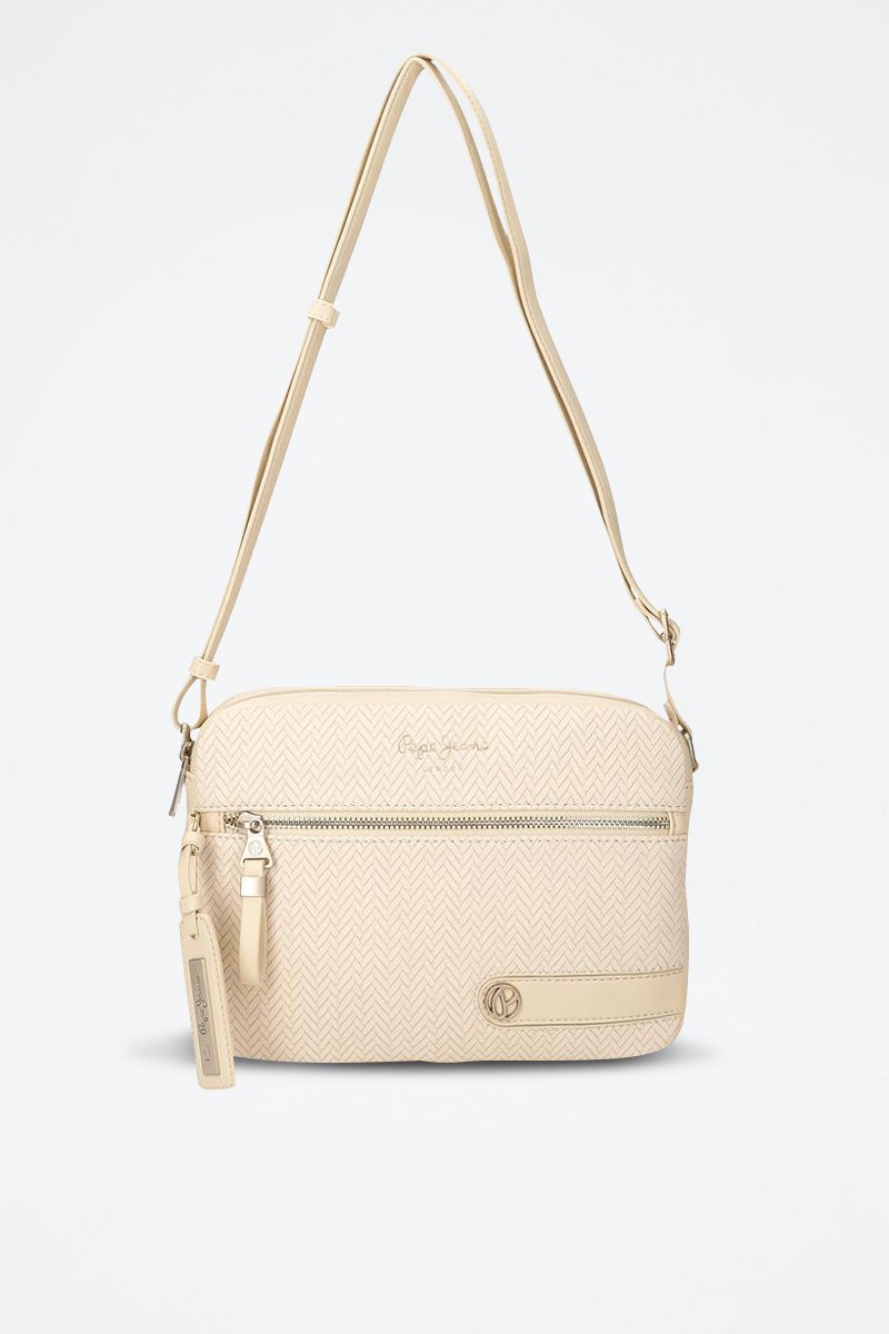 Poche zippée, effet tressé, logo, logo métallique devant.