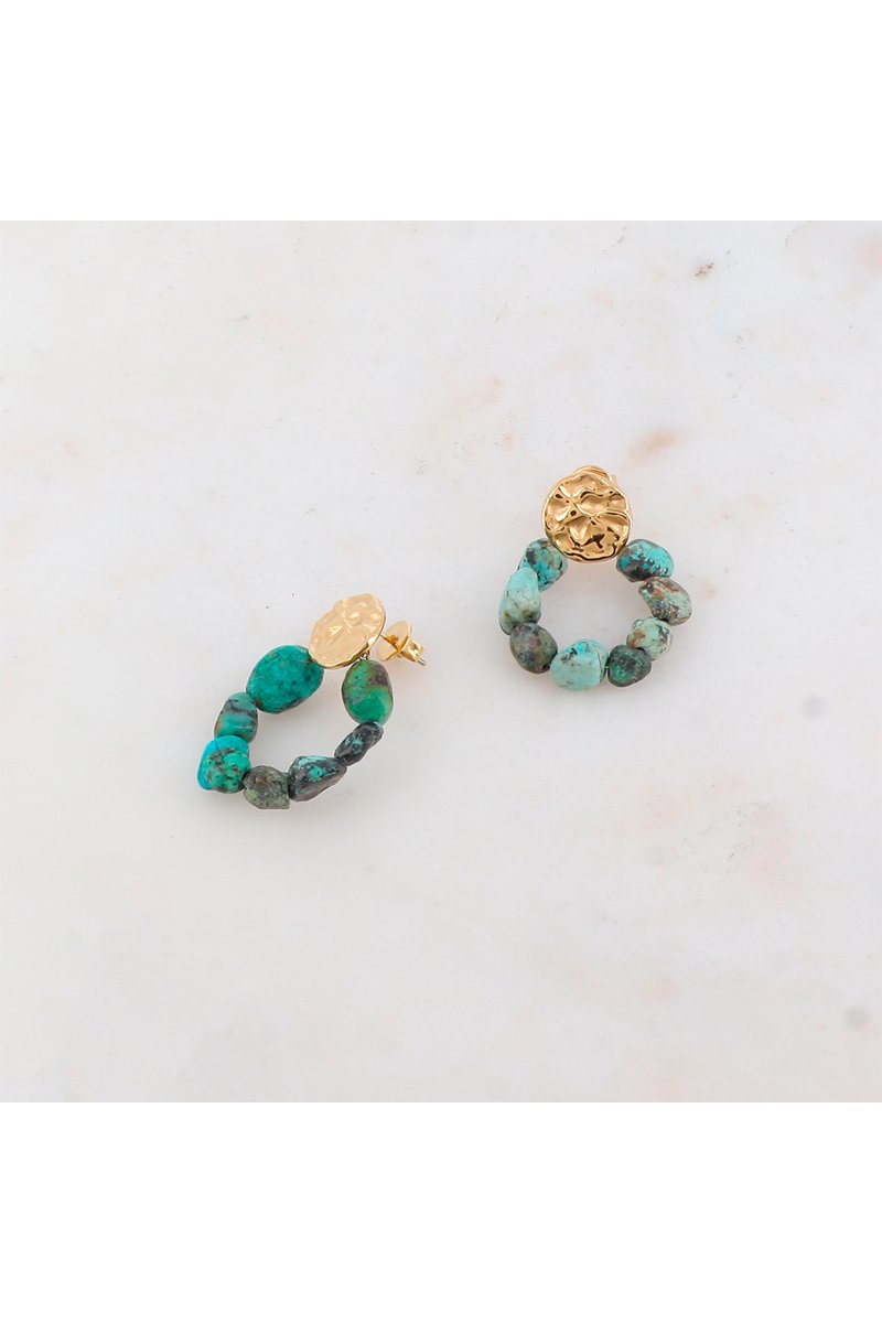 Boucles d'oreilles serties de turquoises africaines reconstituées.