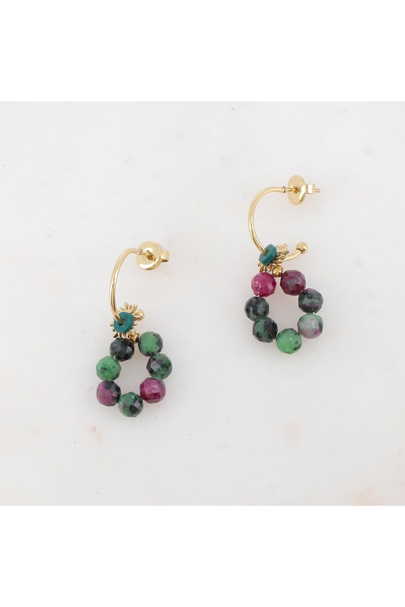 Boucles d’oreilles serties de 7 rubis-zoïsites.