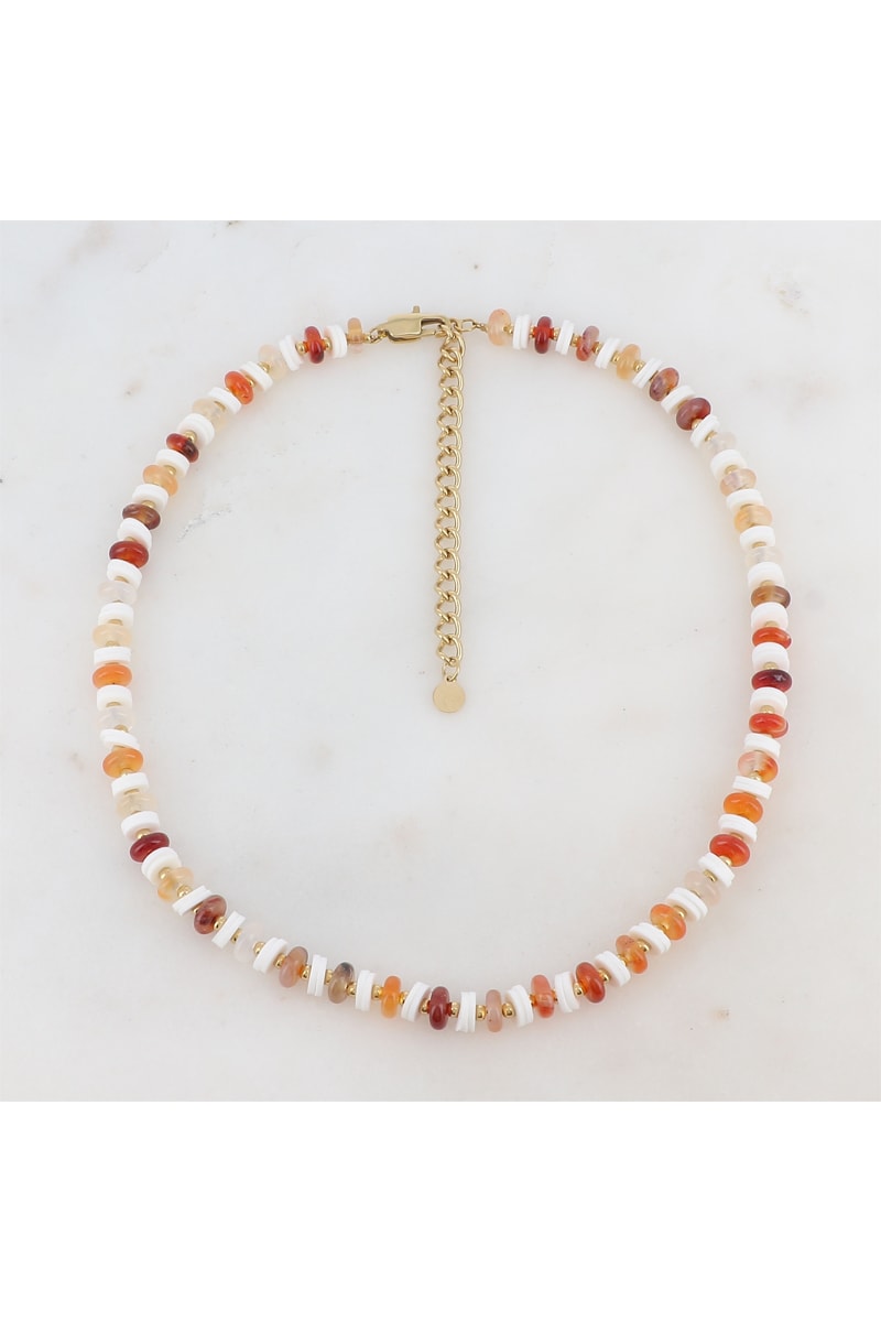 Collier serti de perles d’imitation et perles Heishi.