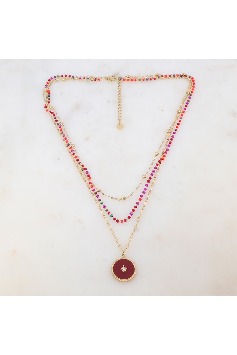 Collier multirangs serti de cristaux et de perles d’imitation.