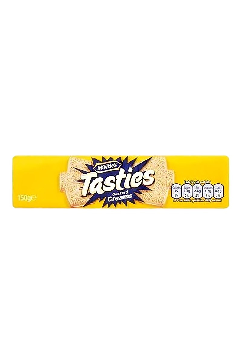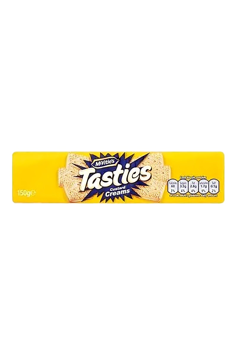 McVitie's Tasties Custard Creams Biscuit sont des biscuits sandwich avec une garniture à la crème, placée entre deux biscuits croustillants.