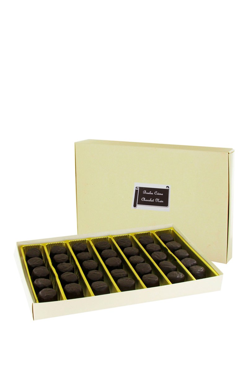 Ingrédients : chocolat noir 70% de cacao, pâte de cacao, sucre, beurre de cacao, glucose, vanilline, émulsifiant : lécithine de soja sans OGM, sorbitol, arôme naturel de vanille. Pur beurre de cacao.