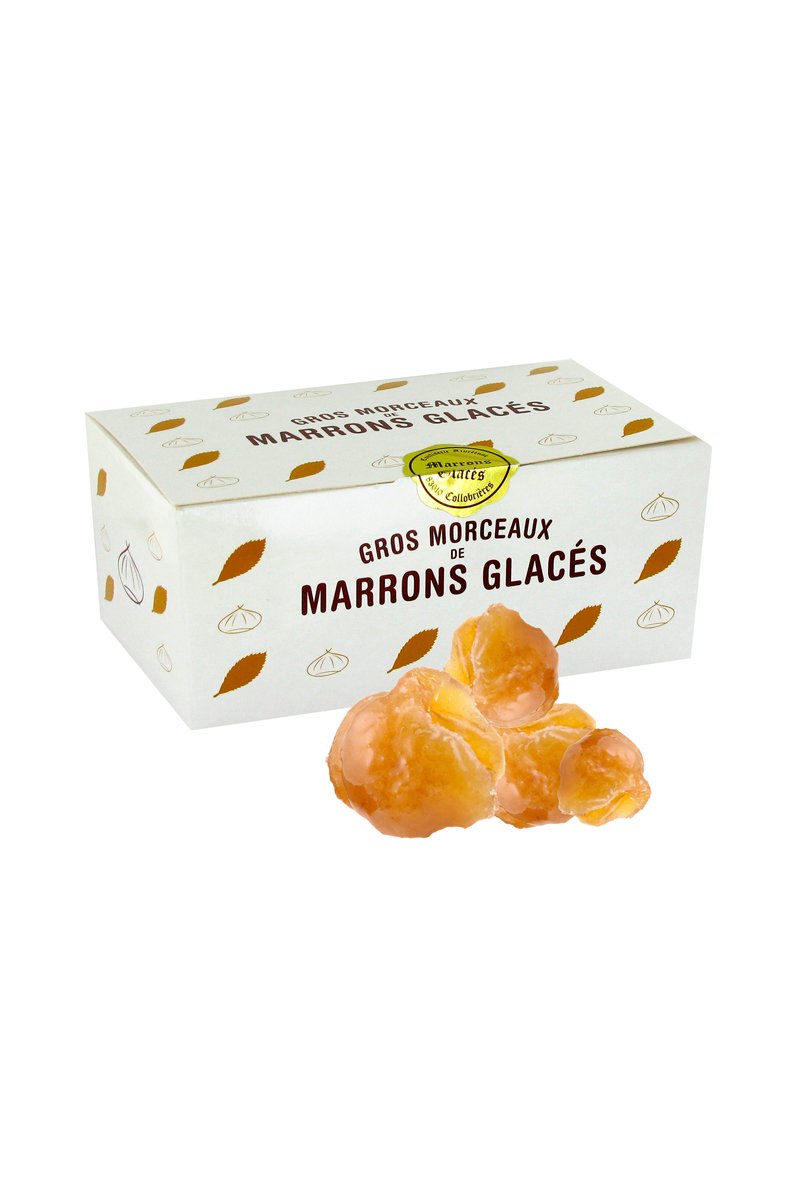 Ingrédients : marrons, sucre, sirop de glucose, humectant : sorbitol, gousses de vanille, conservateur : sorbate de potassium (E202).
