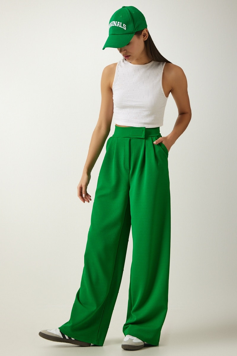 Pantalon straight taille haute - Vert