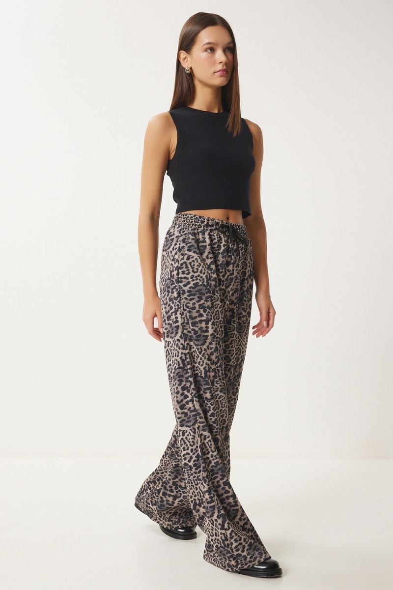 Pantalon wide legs - Noir et beige