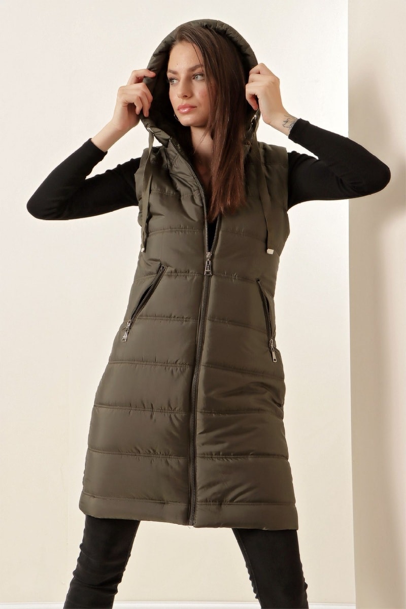 Doudoune longue sans manches - Kaki