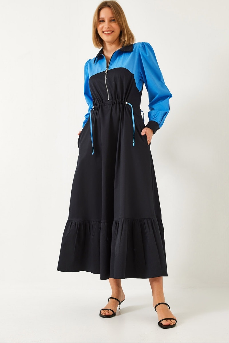 Robe longue - Bleu électrique et noir