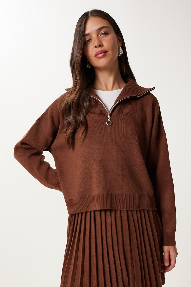 Pull et jupe plissée - Marron