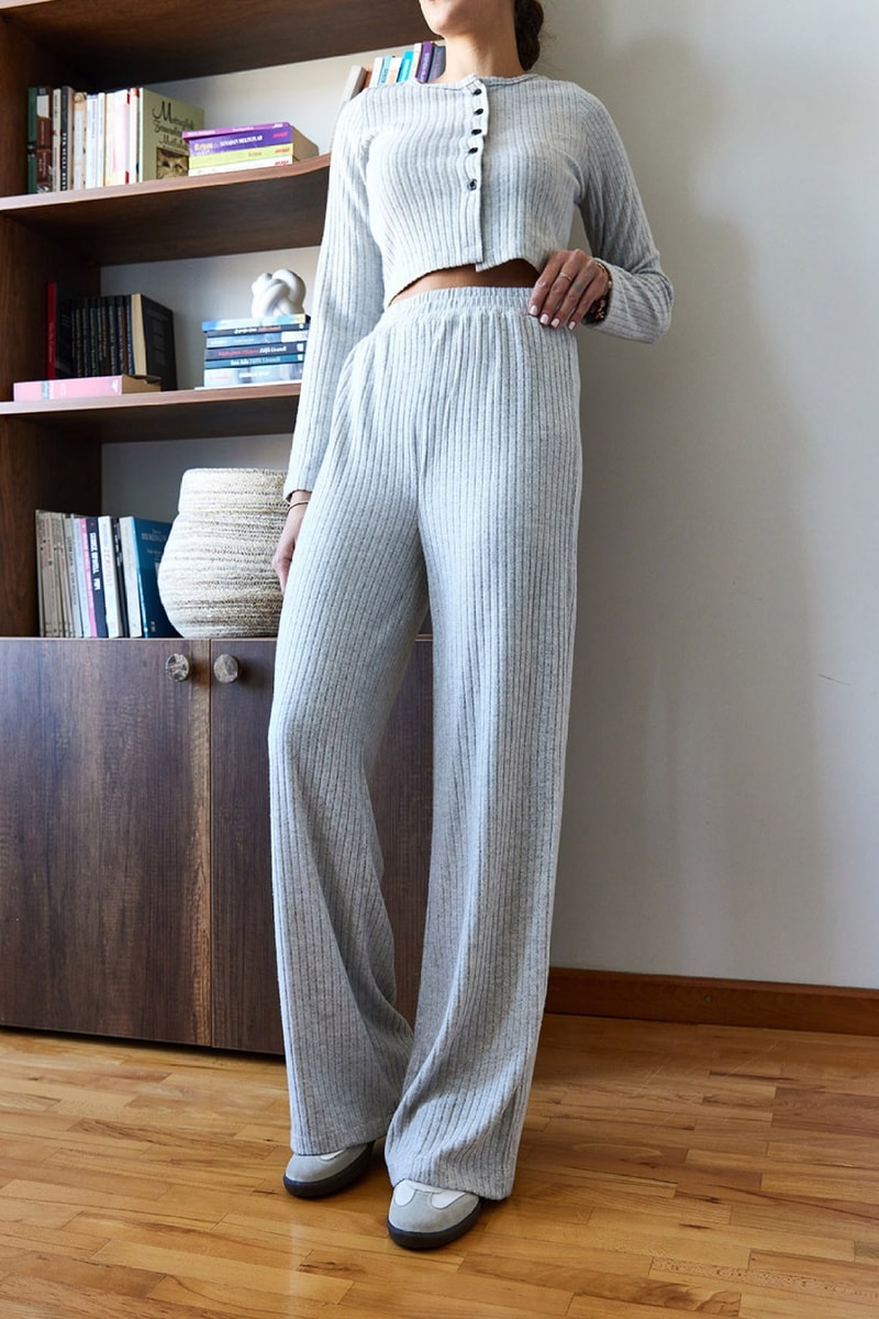 Gilet court et pantalon regular taille haute - Gris clair chiné