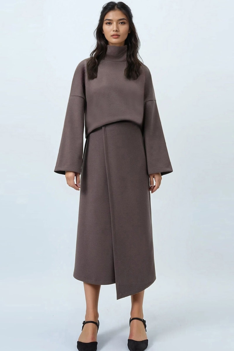 Blouse et jupe portefeuille - Marron