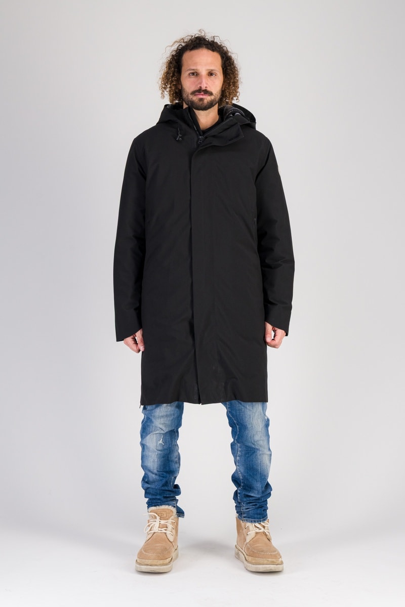 Doublure intérieure effet doudoune entièrement amovible (corps, manches, capuche).