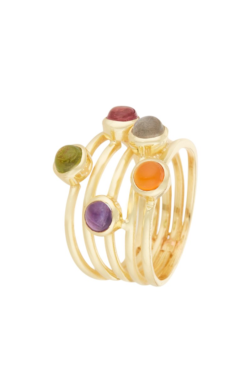 Bague sertie d'un péridot, d'une labradorite, d'une cornaline, d'une tourmaline et d'une améthyste.