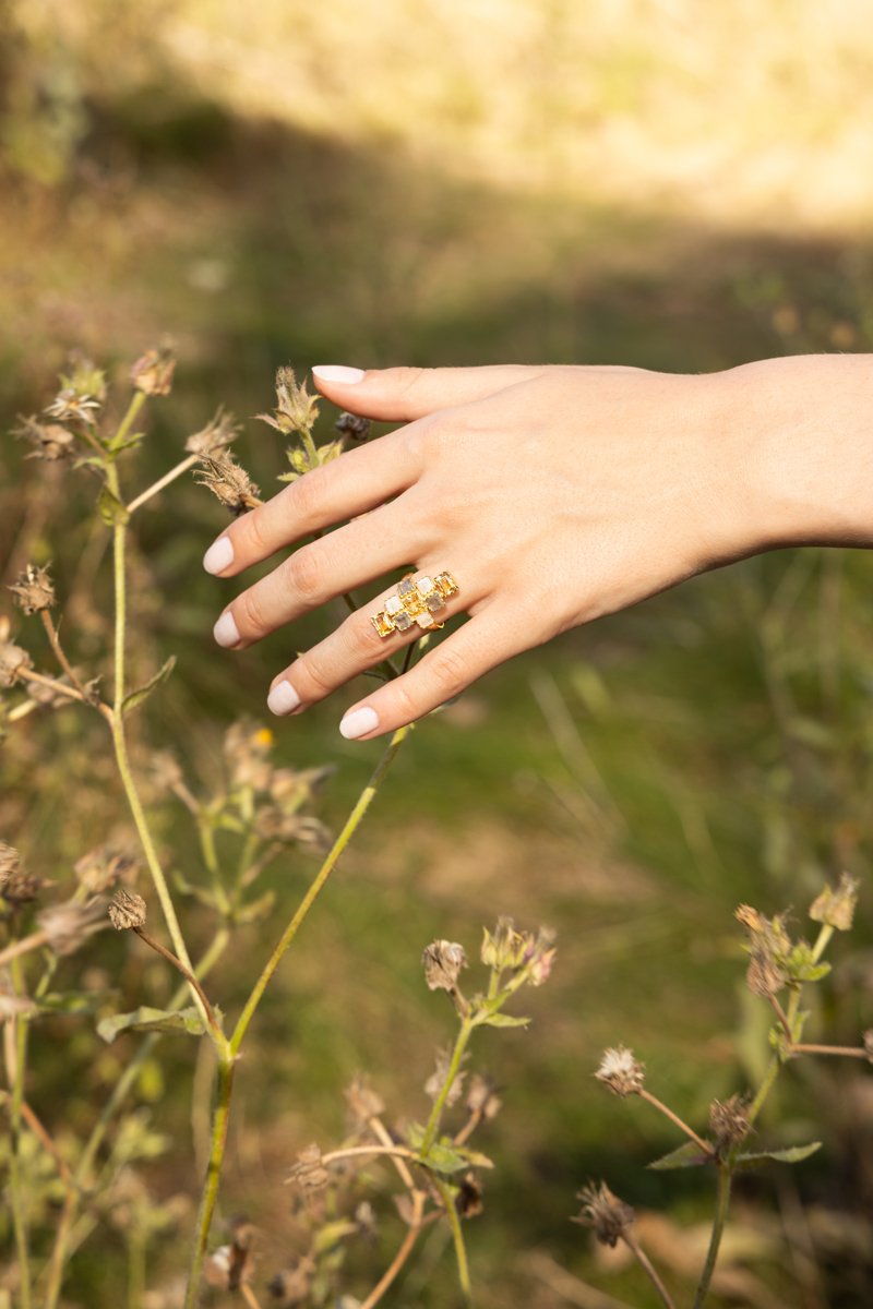 Bague Maya - Labradorites et pierres de lune
