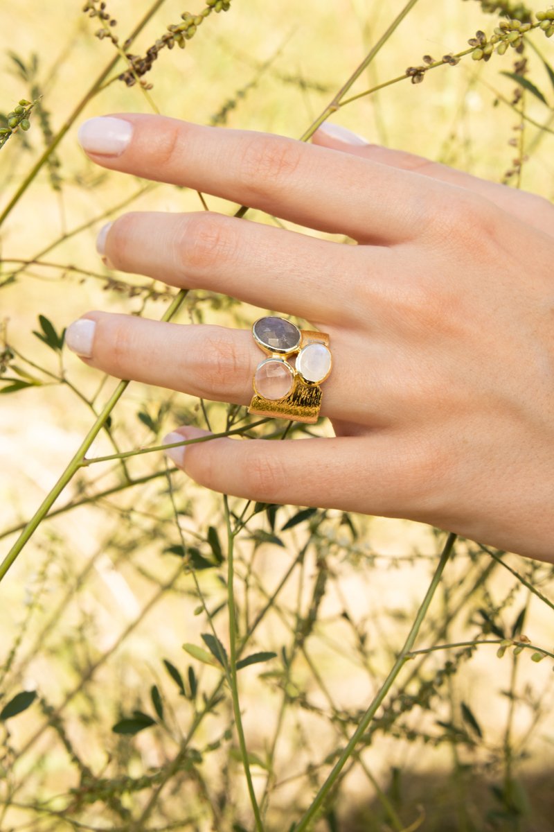 Bague Carmen - Labradorites et quartz