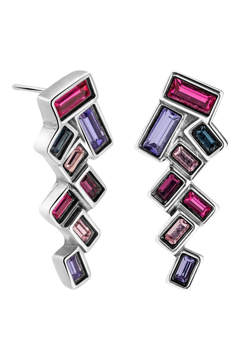 Boucles d’oreilles en plaqué argent serties de 8 cristaux.