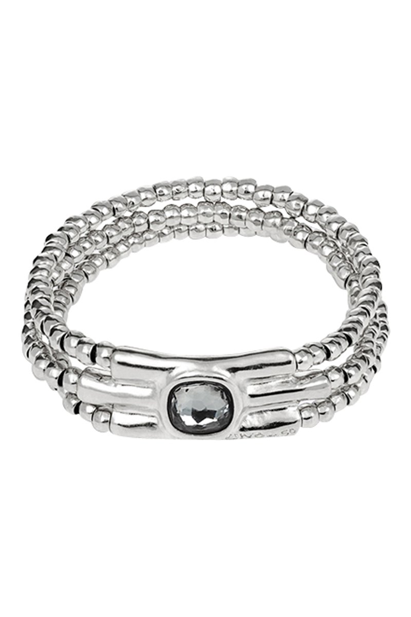 Bracelet multi tours en plaqué argent serti de perles d’imitation et de cristaux.